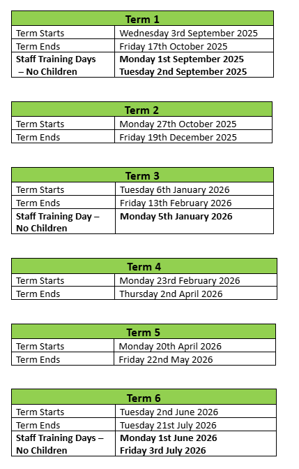 Our term dates help families plan holidays, appointments, and childcare around the school year — and ensure pupils don’t miss any of the exciting learning and experiences we have planned!